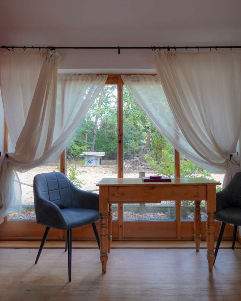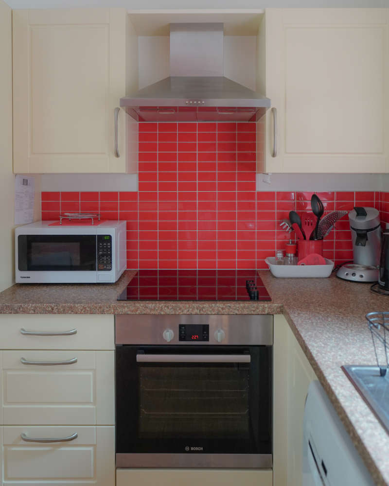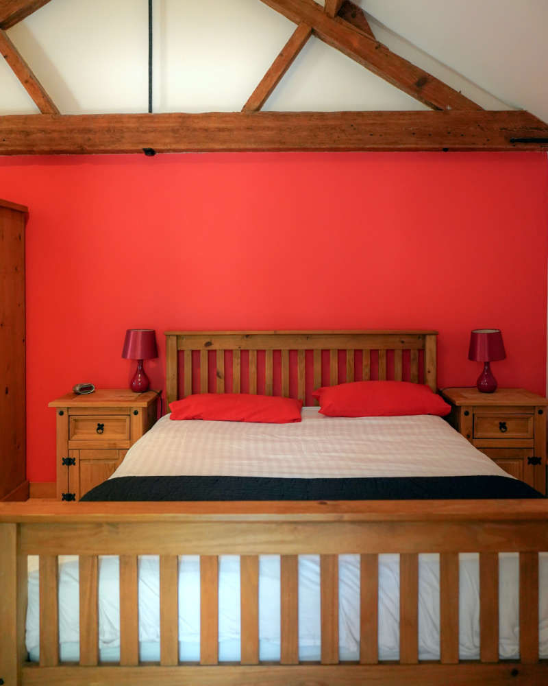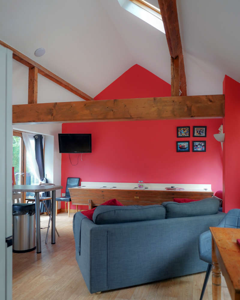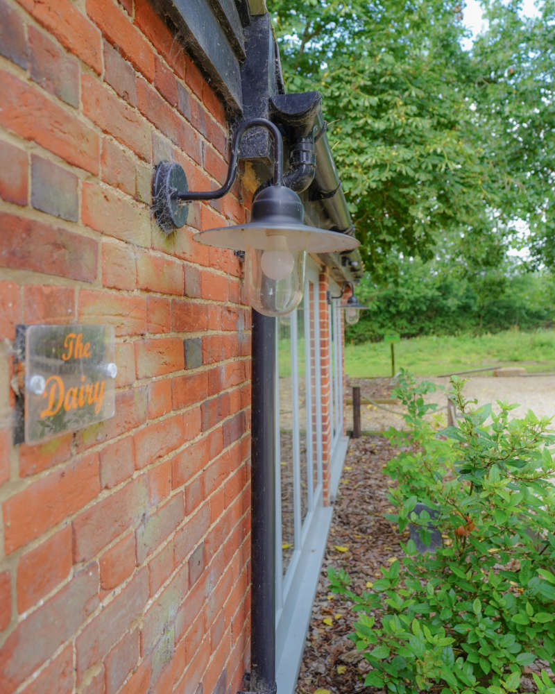 The Dairy is themed retro 70’s red, it’s at the front of Lodge Farm with a big glass windows over looking the fields and our woodland area, its patio looks out over the stunning lakes and the bird hide – where our resident swans (Elvis & Priscilla) often come in to rest.