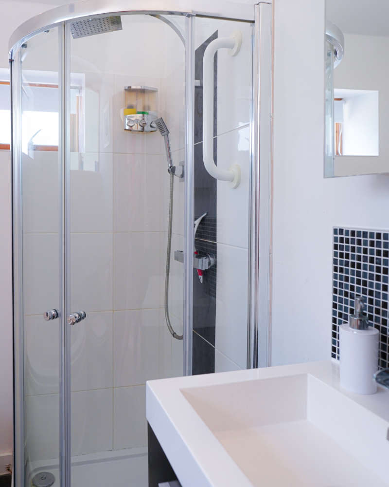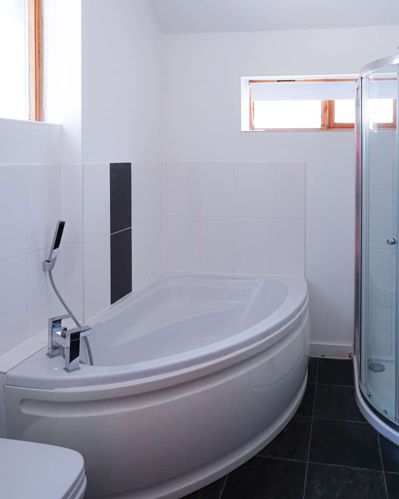 - Bathroom with large corner bath, separate walk-in shower, sensor mirror & heated towel radiator.