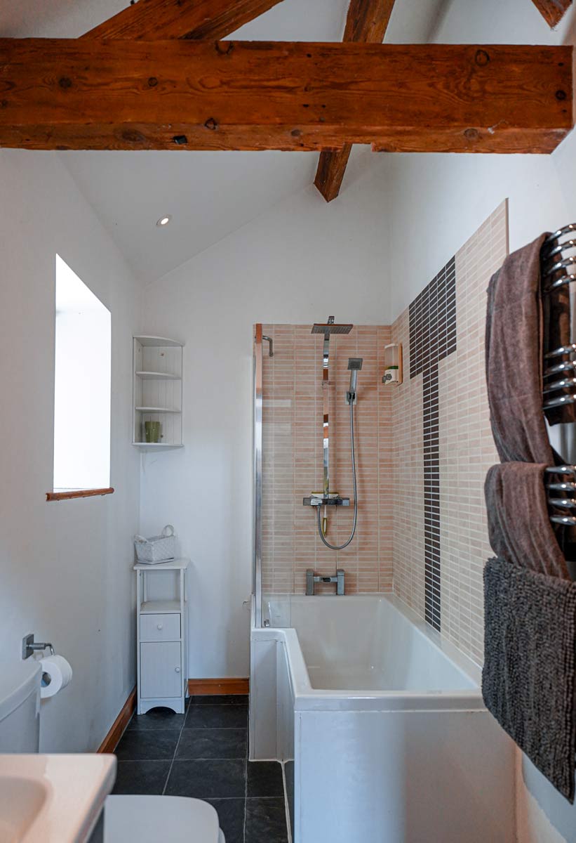 - Bathroom with shower above full sized shower bath, heated towel radiator, sensor mirror and soft close toilet seats awarded 5* quality.